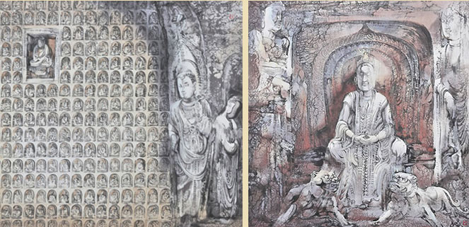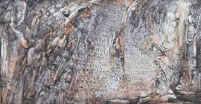 25余幅《墨寫龍門》系列作品,這既是段先生對佛教文化的一種闡釋,也是他藝術昇華的重要過程。他在堅硬的山體與莊嚴的佛尊之間,畫出宗教文化與民族文化交相輝映的精神圖騰。藝術家通過筆墨形式,將其直觀感受傳達給觀者,這一互動過程,使藝術家的作品獲得了新的生命,給人以強烈的視覺衝擊和心靈震撼。